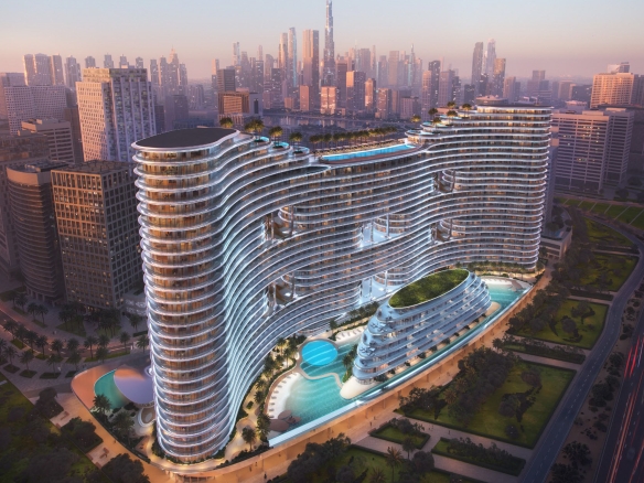 Aquarise is a sophisticated residential project situated in the heart of Business Bay, Dubai, just moments away from the Dubai Canal and Downtown Dubai. The project consists of a sleek, wave-like façade, designed to reflect the fluidity of water, creating a dynamic and artistic statement within the city skyline. Aquarise is an architectural marvel, where glass and light dance together, offering both functionality and an artistic experience for its residents.